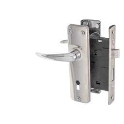 Ideal for use on interior doors in residential or light commercial settings, this lockset delivers reliable security with a contemporary look. This 2-lever poly prop mortise lock provides both durability and style, featuring a stainless steel faceplate for added resilience. It includes pressed steel handles with a sleek chrome-plated finish, offering a modern aesthetic while ensuring secure functionality. |