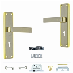 The LUXE Satin Nickel & Brass plated 3-lever lockset is designed for exterior doors, offering enhanced security.